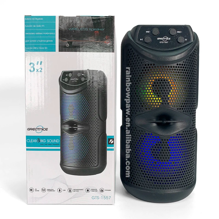 اسپیکر بلوتوثی گریت نایس 1557 gts دارای دو اسپیکر 3 اینچی 5 وات واقعی است که کیفیت صدایی واضح و بلندی را برای شما به ارمغان می آورد. این اسپیکر قبلیت پخش از usb و sd card و بلوتوث می باشد .این اسپیکر همراه یک کابل شارژ اراِئه می گردد.
