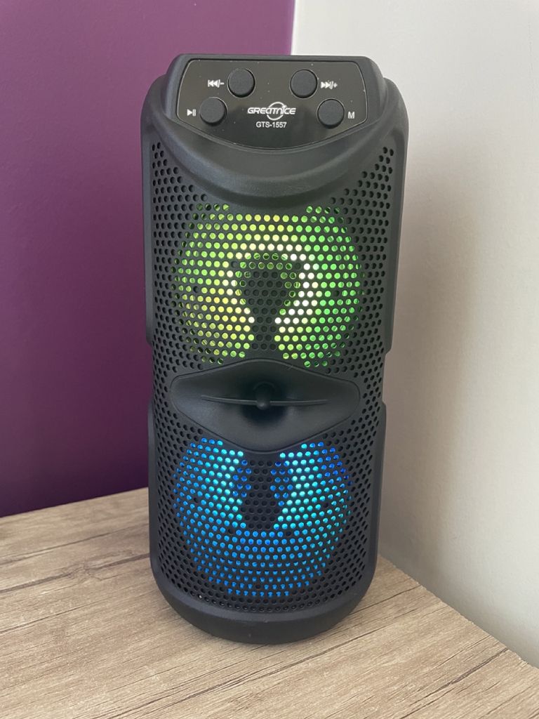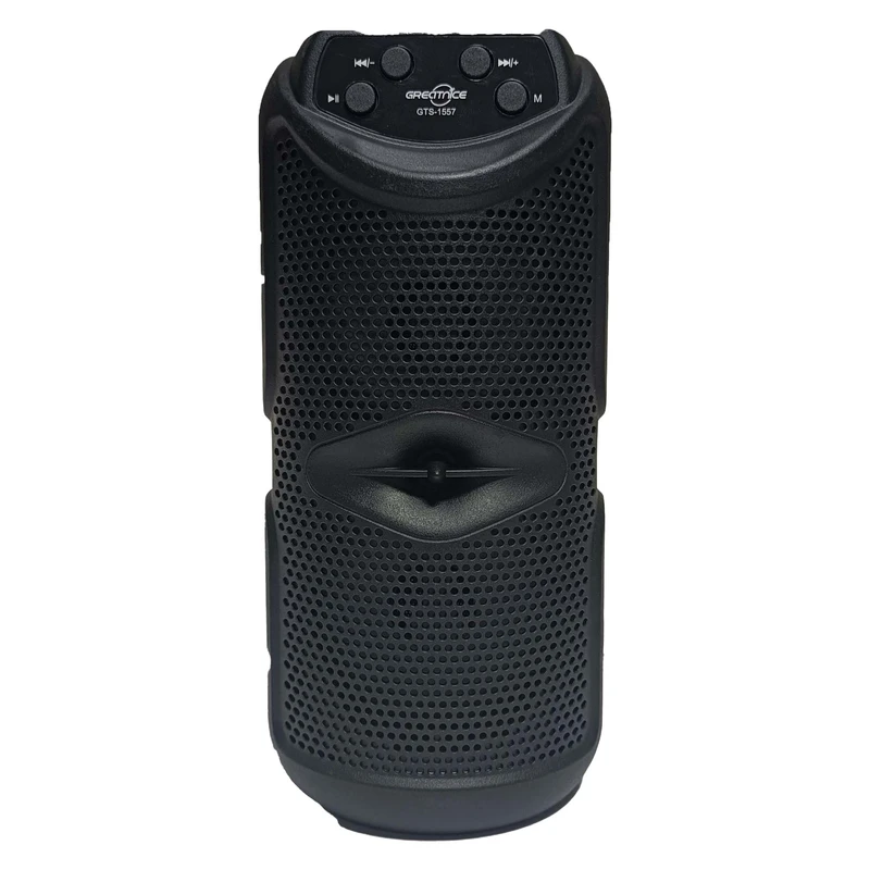 اسپیکر بلوتوثی گریت نایس 1557 gts دارای دو اسپیکر 3 اینچی 5 وات واقعی است که کیفیت صدایی واضح و بلندی را برای شما به ارمغان می آورد. این اسپیکر قبلیت پخش از usb و sd card و بلوتوث می باشد .این اسپیکر همراه یک کابل شارژ اراِئه می گردد.